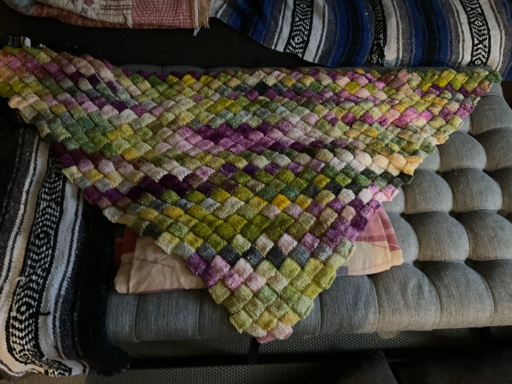 I leave you with the latest Entrelac off the needles…it is a dull and dreary morning for sure, but the fist image is pretty color accurate…
